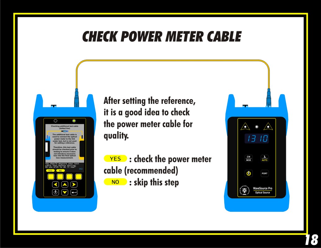 Once the references have been set, the user is given the opportunity to check the power meter test cable.