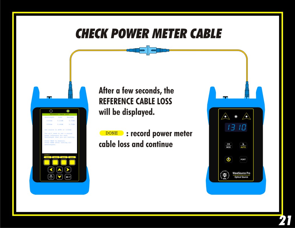Press DONE to record the REFERENCE CABLE LOSS and continue.