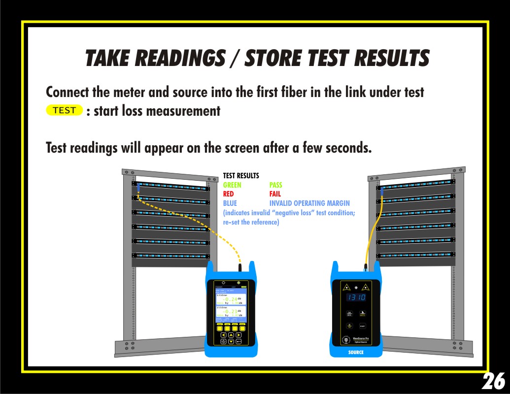 Connect the meter and source in to the first fiber in the link.
