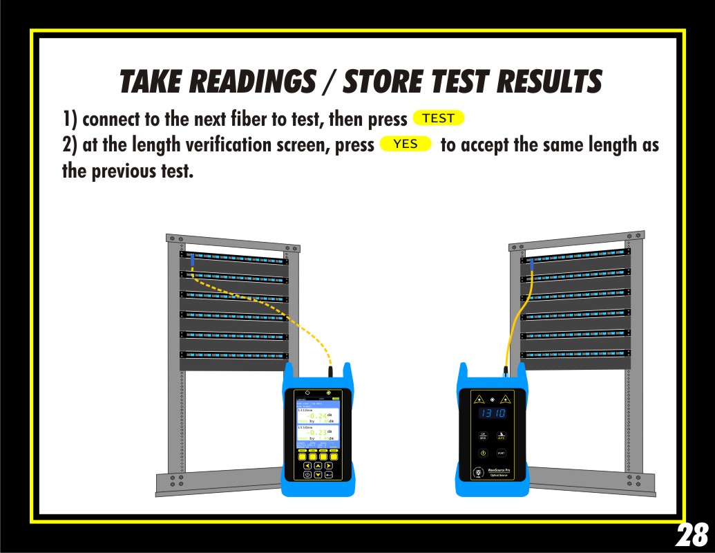 Connect the meter and source in to the next fiber to be tested, then press TEST to continue.