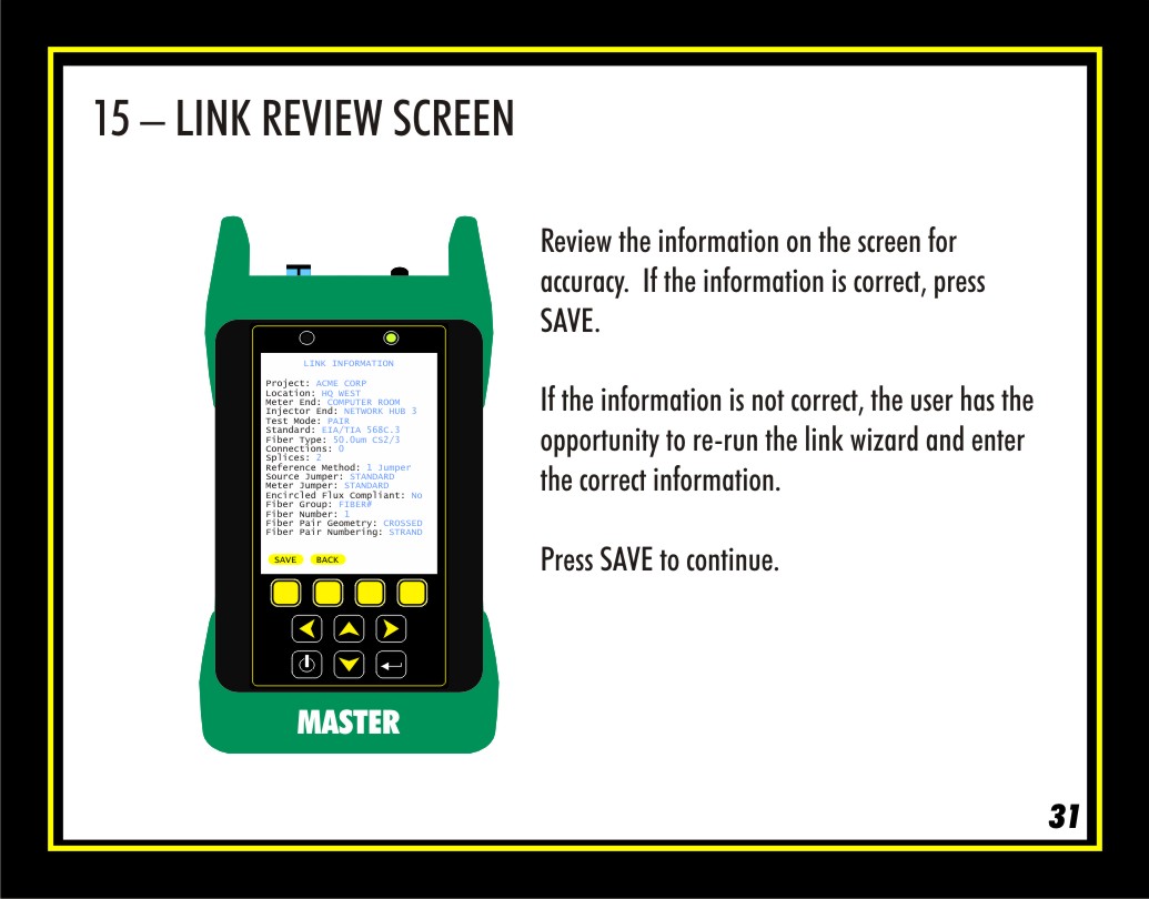 When all of the necessary parameters have been entered, the user is given the opportunity to accept the settings, or go back and correct any errors in the settings.
