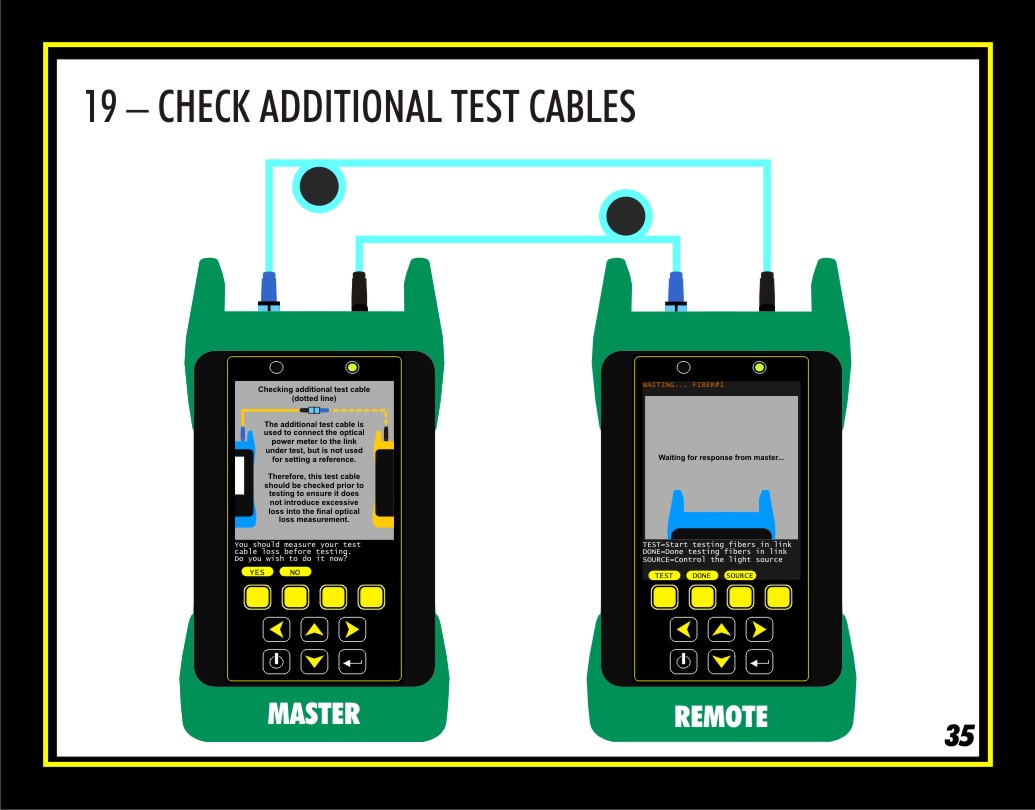 The next slide briefly explains the reason for testing the additional test cable. Checking these cables is recommended to ensure they are okay to use.